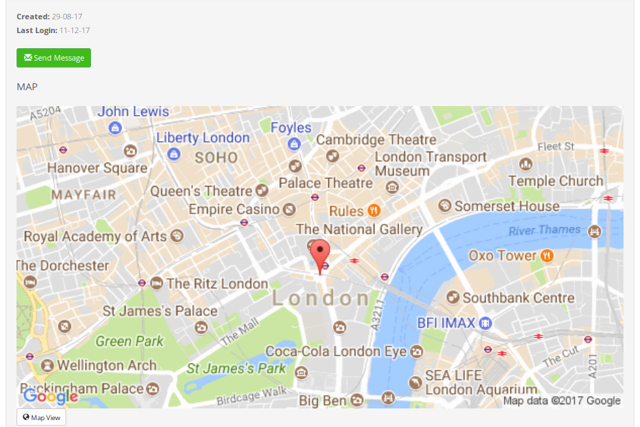 The user enters his address into his profile and a static map is automatically displayed as an image in the user profile page. Below the map, there’s an option that allow your website to show the location of the user in a map view.